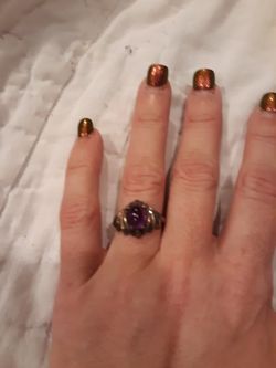 10k yellow gold Three stone genuine Amethyst and Diamond Ring Size 7. Beautiful box not included$160Monroe, NC