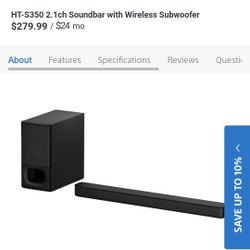 Sony 2.1ch Soundbar with Wireless Subwoofer HTS350$130Rock Hill, SC