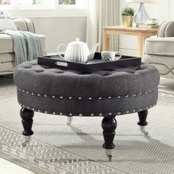 24KF Large Round Upholstered Tufted Button Linen Ottoman Coffee Table, Large Footrest Bench with Casters Rolling Wheels-Charcoal Gray$150Charlotte, NC