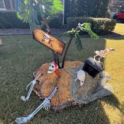 Handmade Pirate Island Treasure Palm Tree Halloween Yard Decor Prop Skeleton $195Charlotte, NC