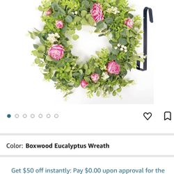 Summer Wreath for Front Door - 18” Spring Wreaths with Hanger - Rose Peony Wreath with Boxwood Eucalyptus Green Leaves for Outdoor Indoor - Wall Windo$15Boiling Springs, SC