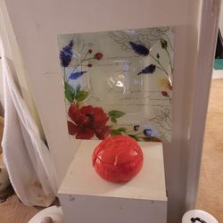 Red POPPY Kitchen Decor 2 Pieces 15x15 Serving Platter 6x3.5 Ceramic Serving Dish With Lid$20Greer, SC