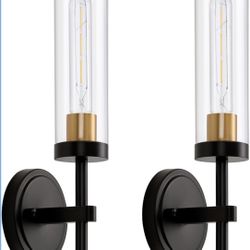 New 15.5” Set of 2 Black&Gold Hardwired Wall Sconces,Bathroom Vanity Lights W Clear Glass Dimmable$35Greer, SC
