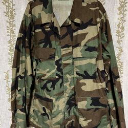 Terry Manufacturing Co Mens Combat Jacket Green Camouflage Flap Pockets Button XL$25Greer, SC