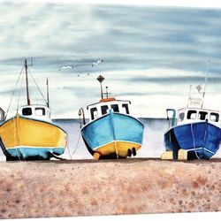 New 18”*24” Coastal Boat Watercolor Wall Art Decor Framed Canvas Beach Serene Seaside Painting$20Greer, SC