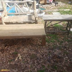 Hand made solid wood outdoor bench table and another table. Make offer. $1Spartanburg, SC