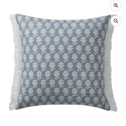 My Texas House 22" x 22" Ivory/Blue Meera Floral Fringe Cotton Decorative Pillow$5Inman, SC