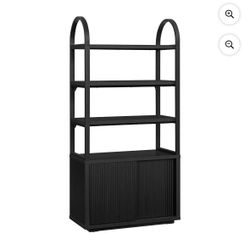Beautiful Fluted 3-Shelf Bookcase with Storage Cabinet by Drew Barrymore, Rich Black Finish. Damaged a little bit$140Inman, SC