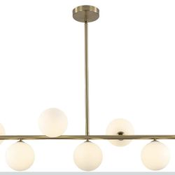New 38.9” W Brushed Brass Gold Sputnik Chandelier Globe Linear Pendant Light 7-Light White Glass$50Greer, SC