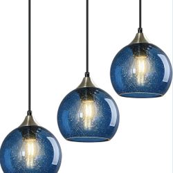 New 5.9” W 3-Pack Blue Glass Pendant Lights Globe Adjustable Height Dimmable Unique Look$50Greer, SC
