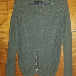 Women's Vintage Eddie Bauer Olive Green Cable-Knit Cardigan Sweater Small Petite $11Gaffney, SC