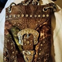 Rustic Couture Rhinestone Belt Buckle Crystal Metal Studded Messenger Bag, Purse, Measures Approximately 7" x 5"$20Cowpens, SC