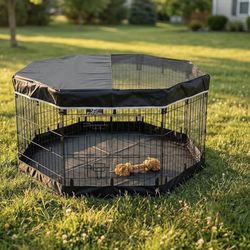 Dog Playpen with Top Cover and Bottom Pad - Metal Foldable Exercise Pen, 8 Panels 30" H x 24" W Indoor Outdoor Pet Fence Puppy Crate Kennel, $50Inman, SC