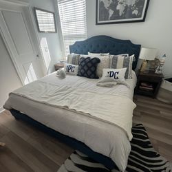 Blue Tufted King Size Bed Frame & Headboard, King Box Spring & King Mattress For Sale $100Summerville, SC