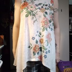 SJS Sleeveless Knit Tunic Top Size M Floral Knit Shark Bite Hem Rhinestones$15Saint George, SC