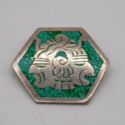 925 Sterling Vintage Mexico Turquoise Gem Inlay Tribal Pin Brooch / Pendant$189Bristol, VA