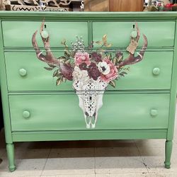 Floral antler/skull dresser- Green 4 drawer dresser $349Johnson City, TN