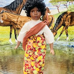 Cute Collectible Doll With A Fruit -Patterned Skirt And A Cream Top 17” Tall $8. As seen in pic a piece of her little thumb on her right hand is missi$8Chattanooga, TN