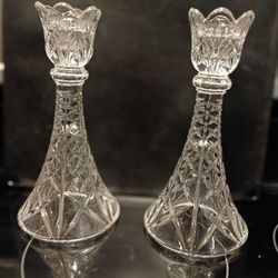 Pair of Antique Cut Crystal Candlestick Holders