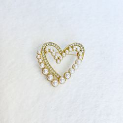 Pearl Heart Broach CZ Diamond Pin Gold Vintage Style Y2K 1” New $10Kingston, GA