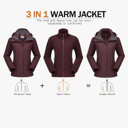 CAMEL CROWN Women's Ski Jacket Waterproof 3 in 1 Winter Jacket Windproof Warm Fleece Hooded size XL$40Chattanooga, TN