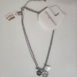 AEROPOSTALE Triple Strand Silver Tone Necklace Peace Heart Rhineston Pendant NWT$13Collegedale, TN