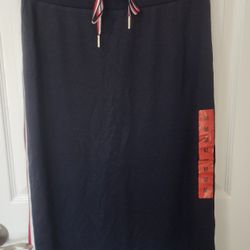 NEW Tommy Hilfiger Casual Sporty Drawstring Side Stripe Midi Skirt Navy Sz M $18Collegedale, TN