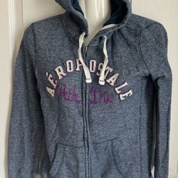 AEROPOSTALE Sz M Blue W/ Purple Logo Zip Up Hooded Sweatshirt Long Sleeve Women$9Collegedale, TN