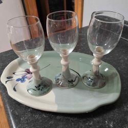 Kent Follette Glazed Ceramic Platter With Wine Glasses$50Erin, TN