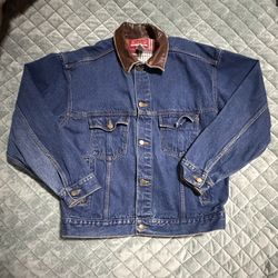 Marlboro Country Store Men's Denim Jacket Leather Collar Plaid Lining Blue Brown$30Clarksville, TN