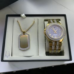 Men's Exclusive Bulova Crystal Accent Gold-Tone PVD Watch and Dog Tag Pendant Box Set (Model: 98K102)$400Clarksville, TN