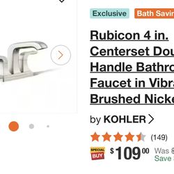 Kohler - Rubicon 4 in. Center-set Double Handle Bathroom Faucet in Vibrant Brushed Nickel New (2 Av)$75Old Hickory, TN