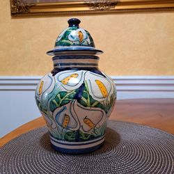 Ceramic vase/container w/ lid, 10 in tall. Handmade in Mexico. $15Brentwood, TN