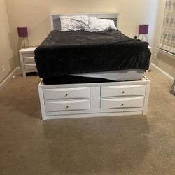 Bedroom Set Queen Bed Frame, One Bedside Table, One Entertainment Table, And A Bookcase $140Nashville, TN