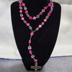 Handmade Catholic Rosary - Neon Pink UV Glow Flower Beads & Faceted Glass$25Milan, TN