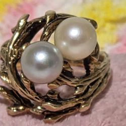 7g Vintage 10K Gold Brutalist Toi et Moi Pearl Ring Size 6.5-7 Mid Century 1970s$999Milan, TN