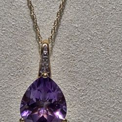 3.0–3.25ct Rose de France Amethyst 14K Gold Filigree Estate Necklace – Pear Cut$900Milan, TN