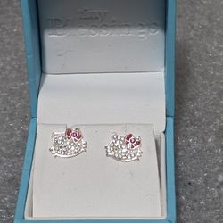 Hello Kitty Little Blessings Stud Earrings .925 Sterling Silver JCM Sanrio Blue $35Milan, TN