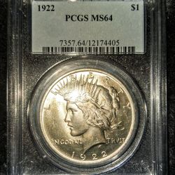 1922 peace dollar pcgs ms64$110Unicoi, TN