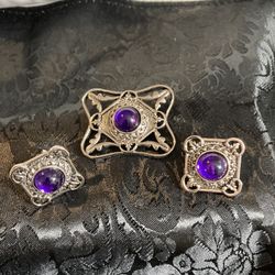 Beautiful Silver/Amethyst Glass Brooch & Earrings$22Maryville, TN