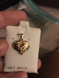 14k gold puffed heart in the front is a cross and foot prints in the sand$75Sevierville, TN