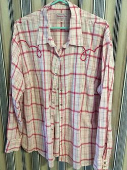 WOMEN’S Size 2X, tag says 3X but seems to be smaller, USED, lightweight material, snap front, has pretty silver lines in material and some shiny bead$12Maryville, TN