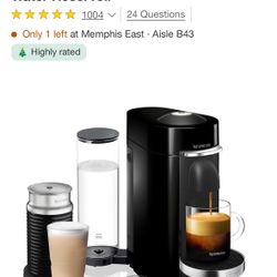 Nespresso Vertuo Plus Deluxe Espresso and Coffee maker Bundle: Piano Black, 12 Capsules, Removable Water Reservoir$100Memphis, TN