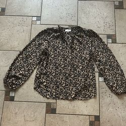 Like New Loft Black Floral Long-Sleeve Blouse with ruffle size S$12Cordova, TN