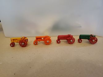 LOT OF 4 VINTAGE MINI TRACTORS GREEN, RED, ORANGE & YELLOW HARD PLASTIC$35Southaven, MS