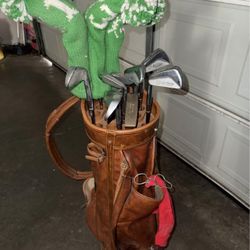 Mixed Brand Golf Iron Set w/ Vintage Leather Bag$75Brighton, TN