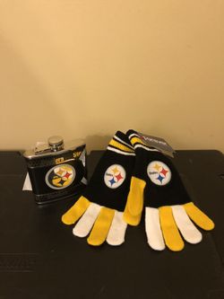 Pittsburgh Steelers gloves and 6 oz stainless steel flask$35Memphis, TN