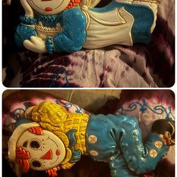 Raggedy Ann and Andy Set of Raised Plastic Plaque Wall Decor :1977 Bobbs-Merrill Great Bright Colors Ann : 14”x 8” Andy: 15”x 10” $20 set Mill$20Millington, TN