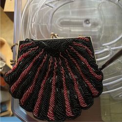 Vintage Walborg- Evening Bag Hong Kong Clam Style Beaded Purse KIss Clasp Purse w/Chain Beadwork is in excellent - no missing beads - clean satin $15Millington, TN