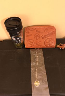 Pittsburgh Steelers necklace 16 oz cup leather wallet$100Bartlett, TN